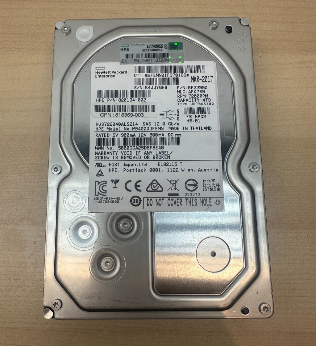 820194-002 818369-003 HP 4TB 7.2K SAS 12G 3.5in HDD server TESTED 100%