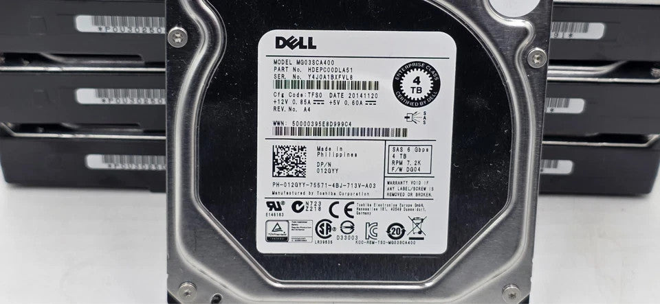 Dell 012GYY 4TB 7200RPM 3.5" SAS Hard Drive R710 R410 R720 MD1200 MG03SCA400 HDD