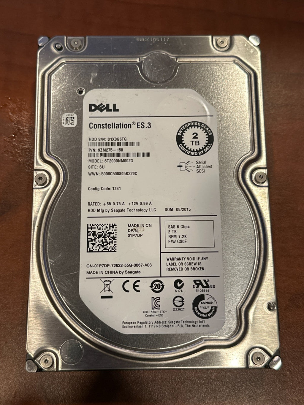 1× Dell 2TB SAS 7.2K HDD (ST2000NM0023 / 01P7DP)