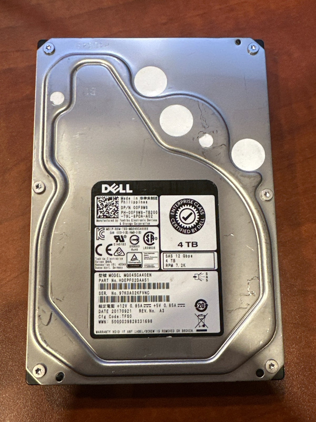 Dell 4TB 7.2K SAS 12Gb/s 3.5" Enterprise HDD – MG04SCA40EE – DP/N 0DF9W8 Tested