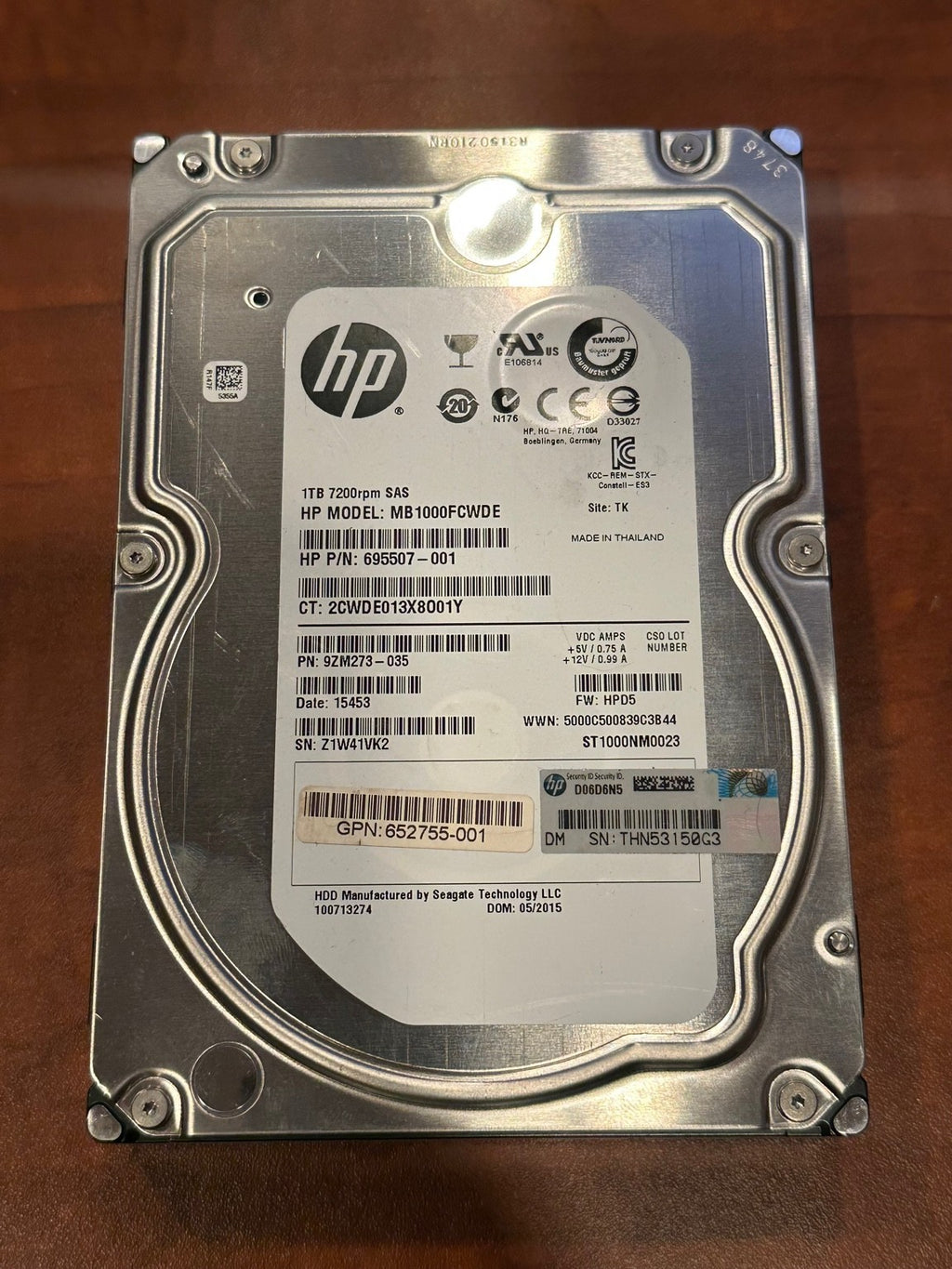 Model MB1000FCWDE, HP part number 695507-001, with HP firmware HPD5.