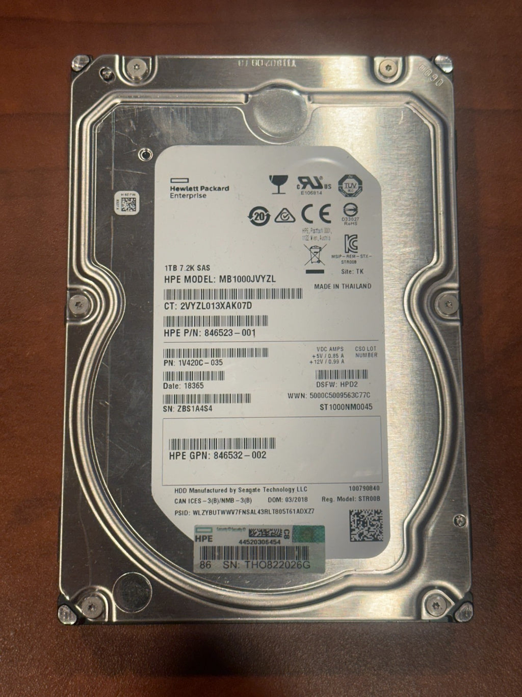 HPE 1TB 7.2K SAS 6Gb MB1000JVYZL 846523-001 ST1000NM0045 – Tested Working