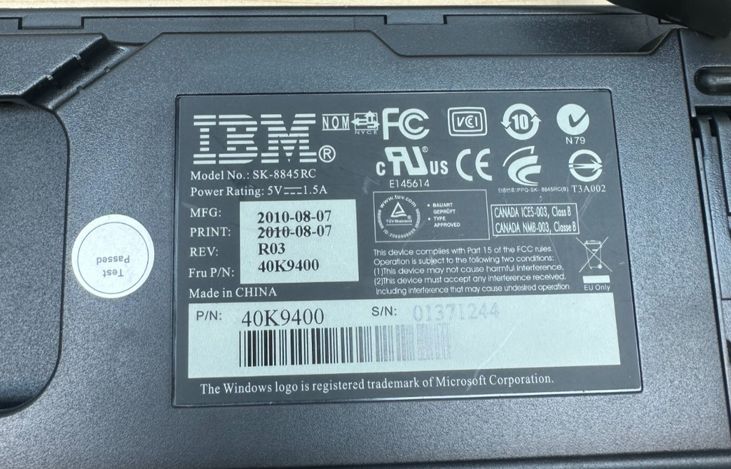 IBM SK-8845 R03 P/N 40K9400 USB Keyboard w/ TrackPoint