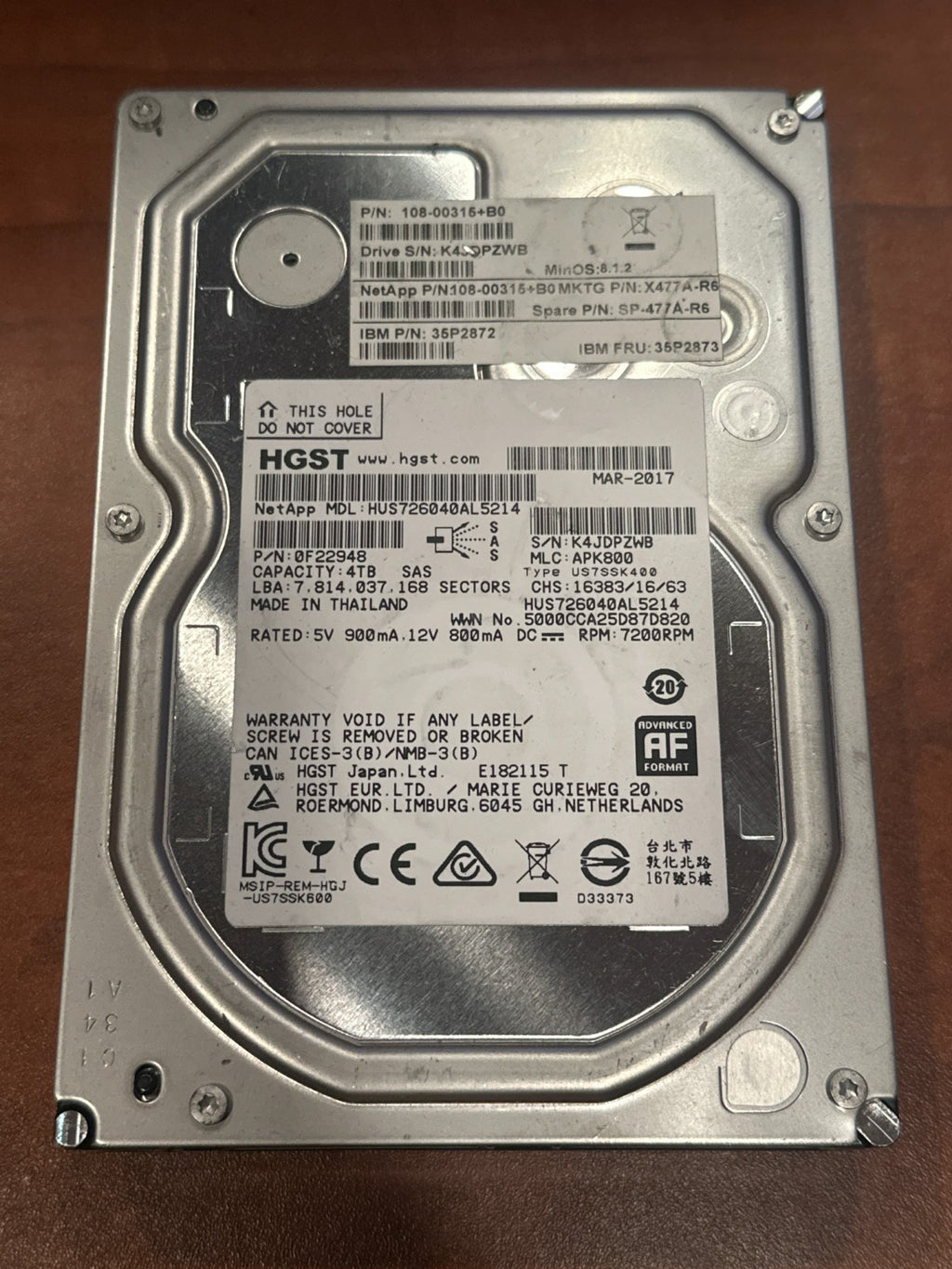 This listing is for a tested and working NetApp-certified HGST 4TB SAS hard drive.