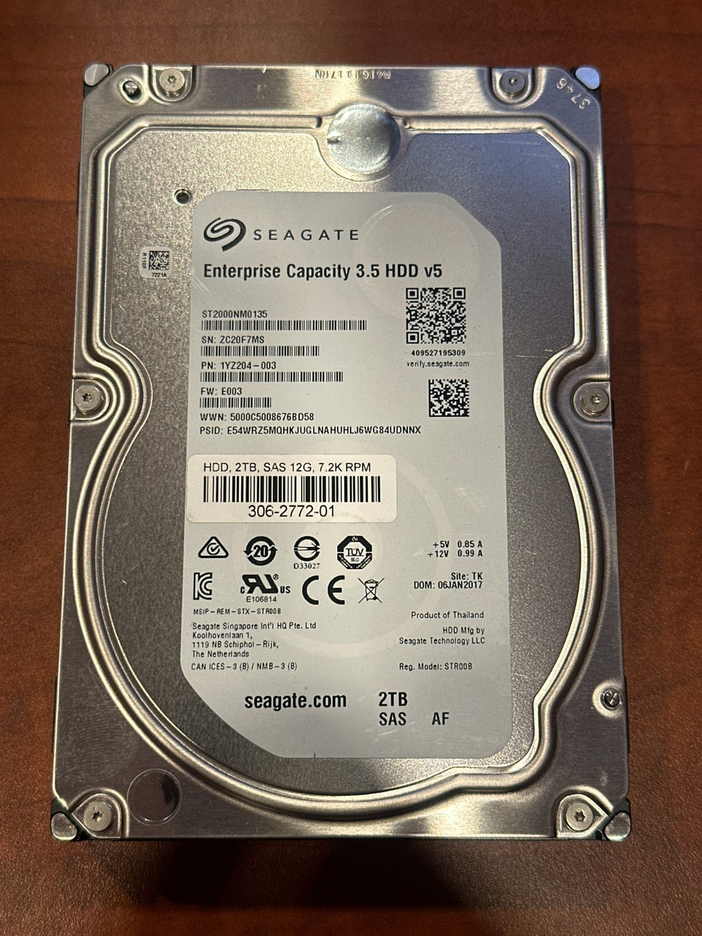 Vendor model ST2000NM0135, built on the Seagate Enterprise Capacity 3.5 HDD v5 OEM platform.