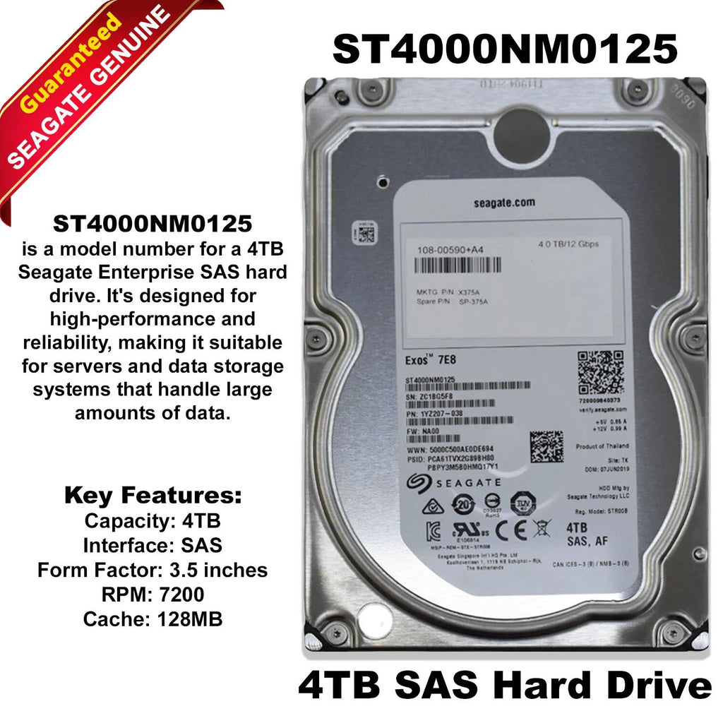 Seagate Exos 7E8 4TB 7.2K SAS 12Gb/s 512e Enterprise HDD ST4000NM0125
