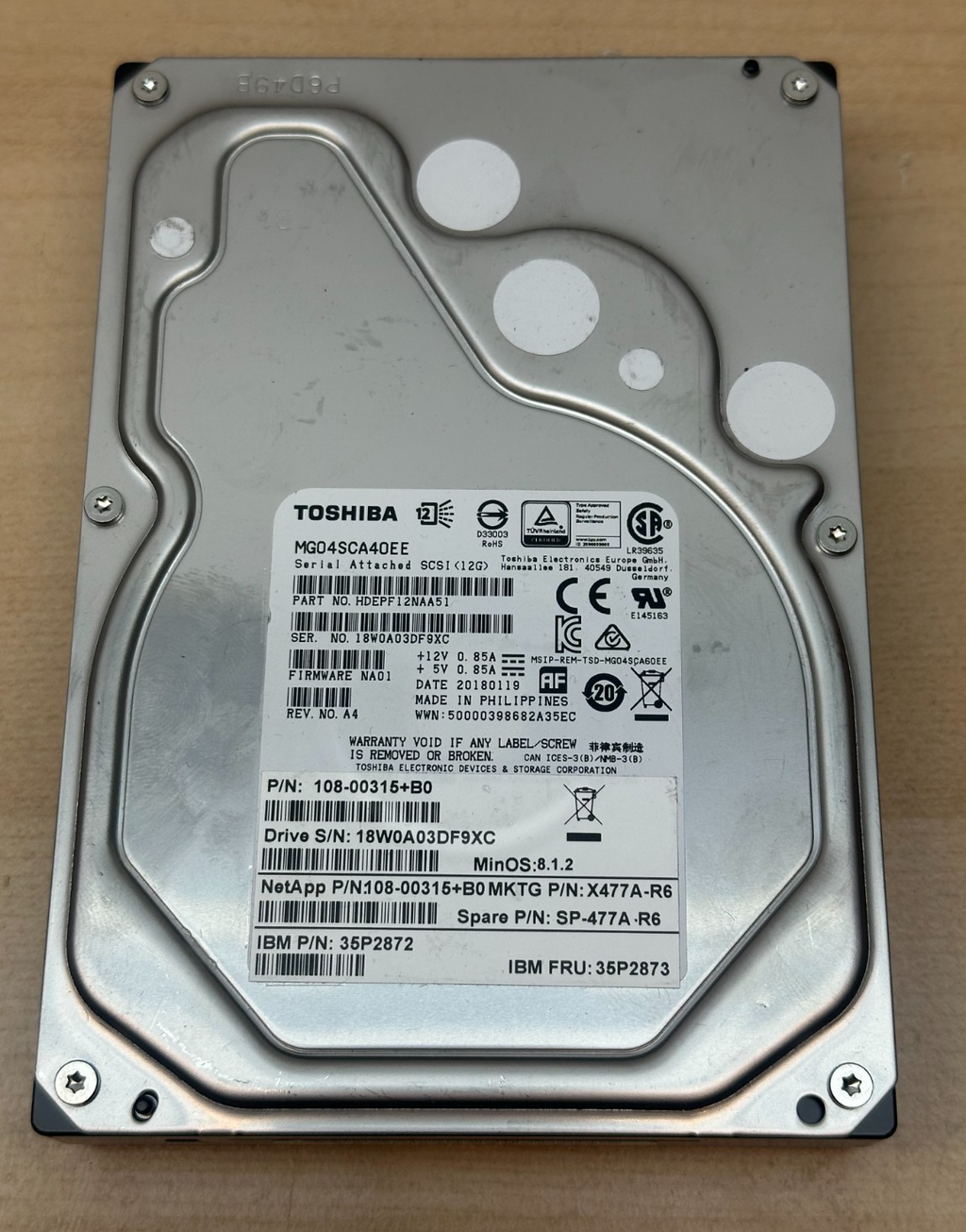 TOSHIBA/NETAPP X477 4TB 7.2K 12Gb/s 3.5" SAS MG04SCA40EE 520 FORMAT HDEPF12NAA51