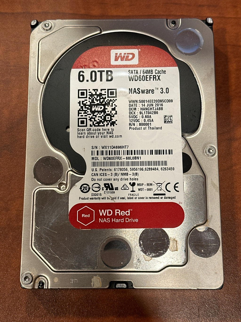 WD60EFRX, built on the Western Digital Red NAS platform.