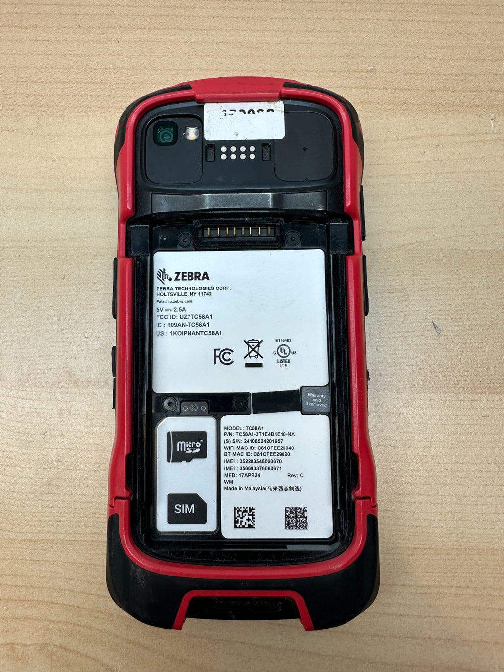 Zebra TC58A1-3T1K7B1010-NA Android Barcode Scanner UNTESTED